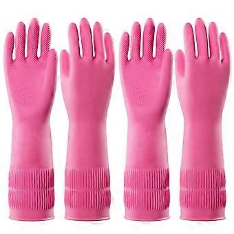 2 Pairs Dishwashing Cleaning Rubber Gloves, Reusable Waterproof Kitchen Gloves, Non-, L