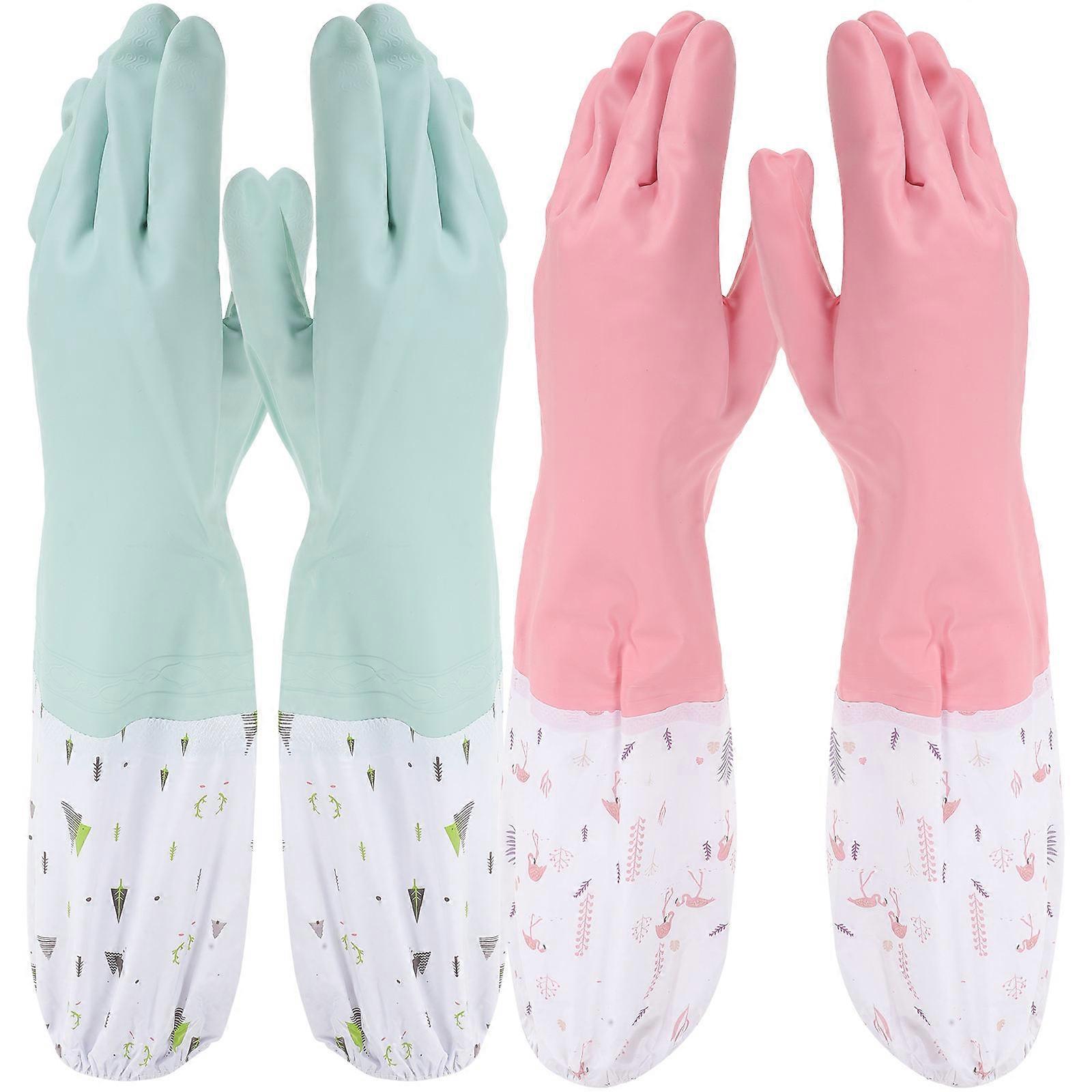 2 Pairs Cleaning Gloves for Kitchen, Laundry, Dishwashing & Gardening Comfortable Household Use Mittens in Pink and Green