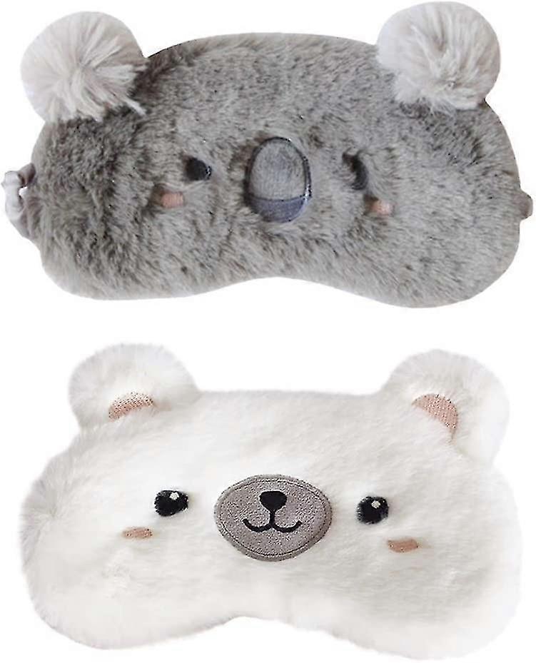 2 Pack Cartoon Animal Sleep Mask Soft Plush Blindfold Eye Masks Eye Cover For Women Girls Travel Nap Night Sleeping (2-pack Koala Bear))