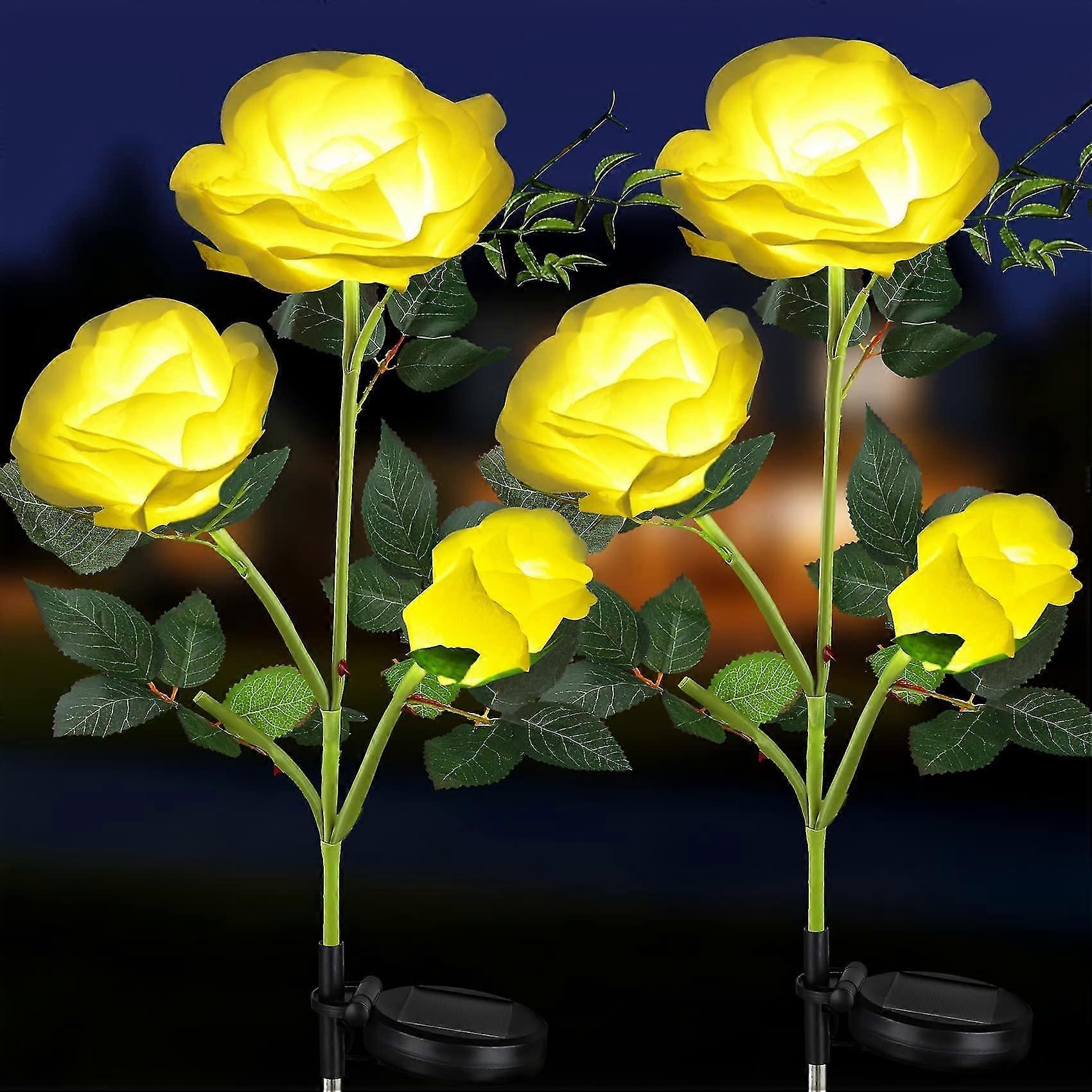 2 Pack Solar Garden Lights Stake, Outdoor Decorative Solar Flowers 3 Rose, Upgraded Waterproof Garden Decor