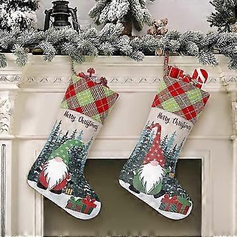 2 Pack Christmas Stockings, 17" Burlap Linen Santa Xmas Stockings Fireplace Hanging Stockings For Christmas Holiday Family Decorations Xmas Gift