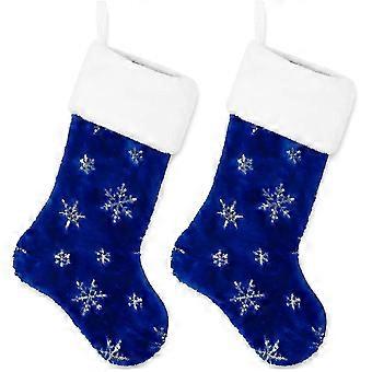 2 Pack Christmas Stockings Large 22 Inch Blue Silver Snowflake Pattern Garter Socks Classic Christmas Ornaments Christmas Party