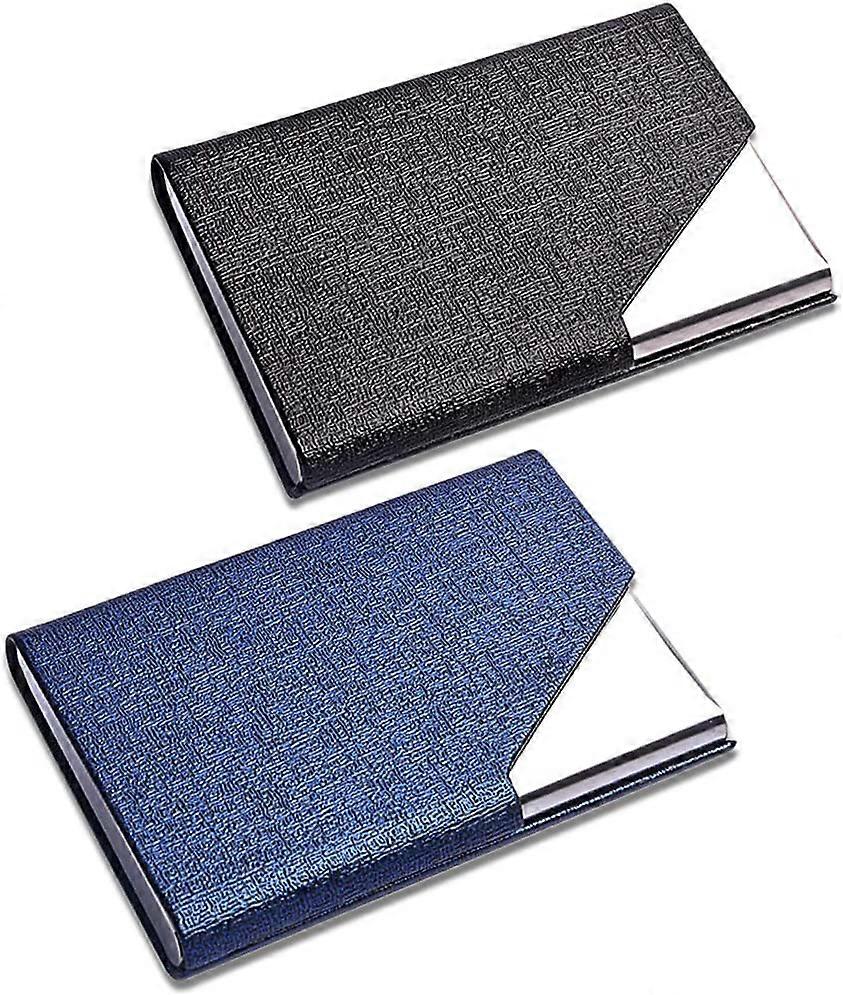 2 Pack Luxury Business Card Holder PU Leather and Stainless Steel Docard Business Protector Bag with Magnetic and Metal Closure for ID Cards