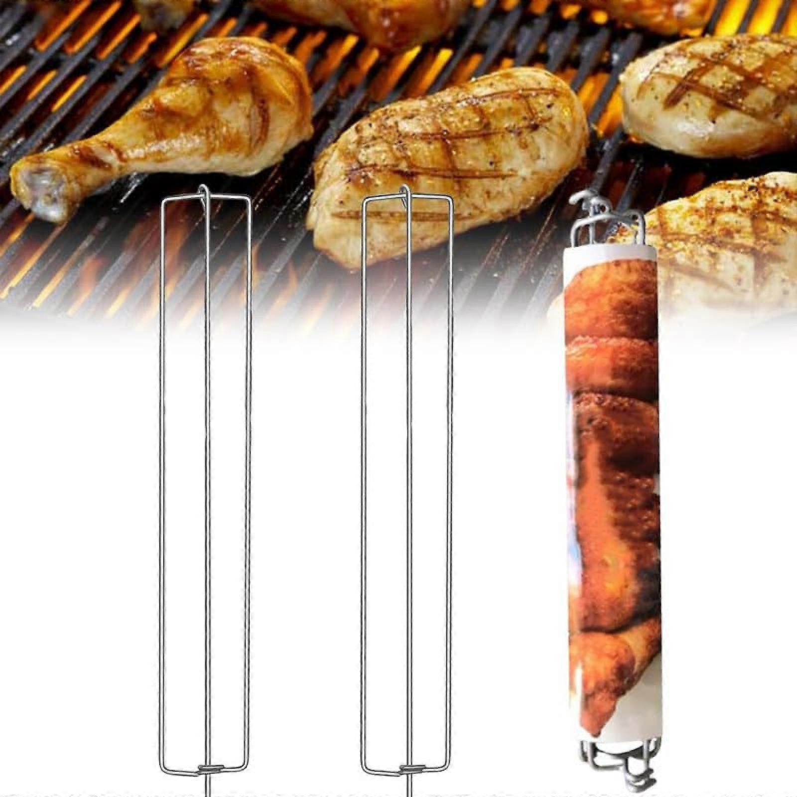 2 Pack Grilled Chicken Wing Wing Rails, Flat Clip Wing Rails, Metal BBQ Fork Wing Racks BBQ Skewers, BBQ Tool Set Outdoor Picnic Camping Party -GSL