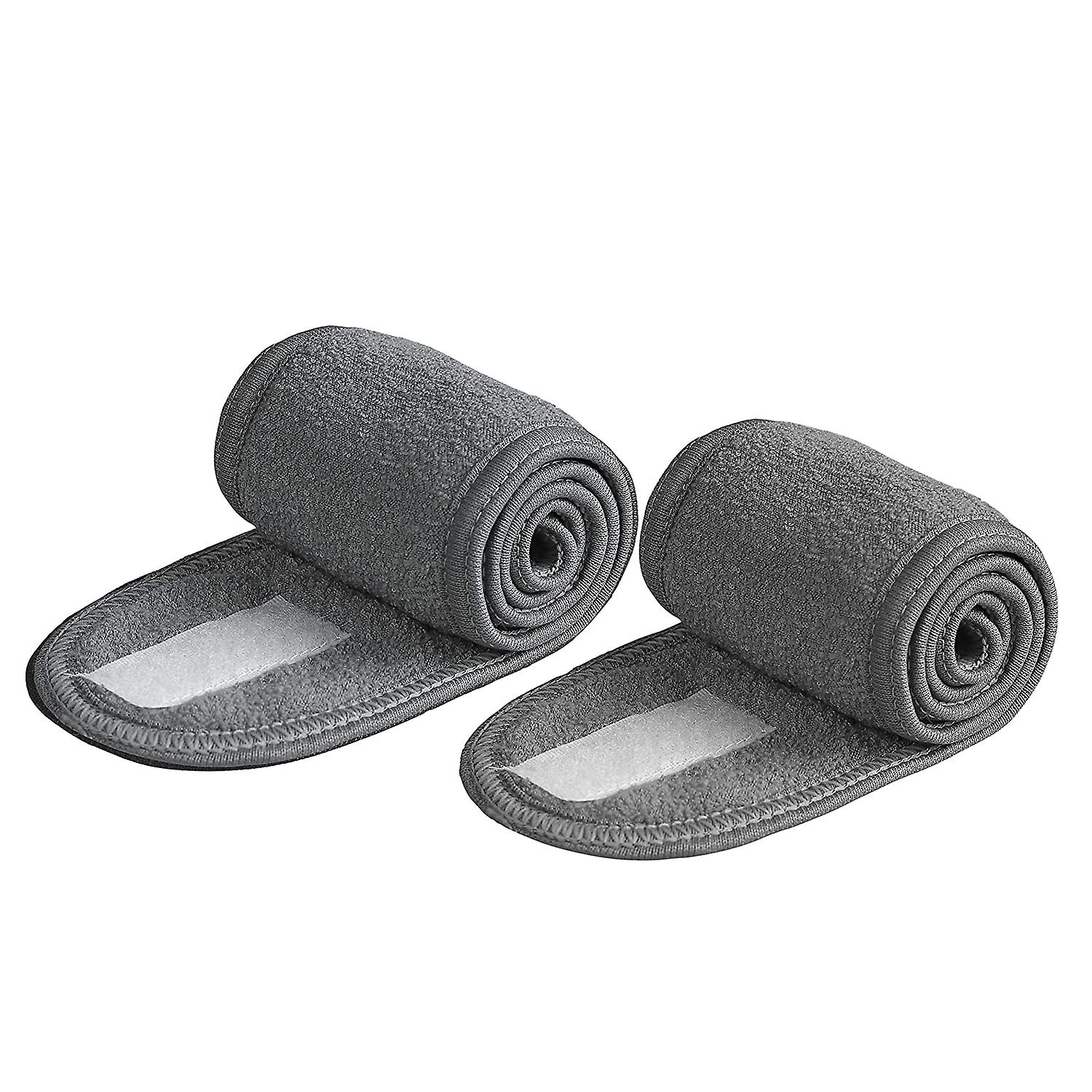 2 Pack Makeup Headband, Ultra Soft Adjustable Spa Facial Headbands Terry Cloth Stretch Make Up Wrap For Face Washing, Shower, Facial Mask, Yoga (gray)