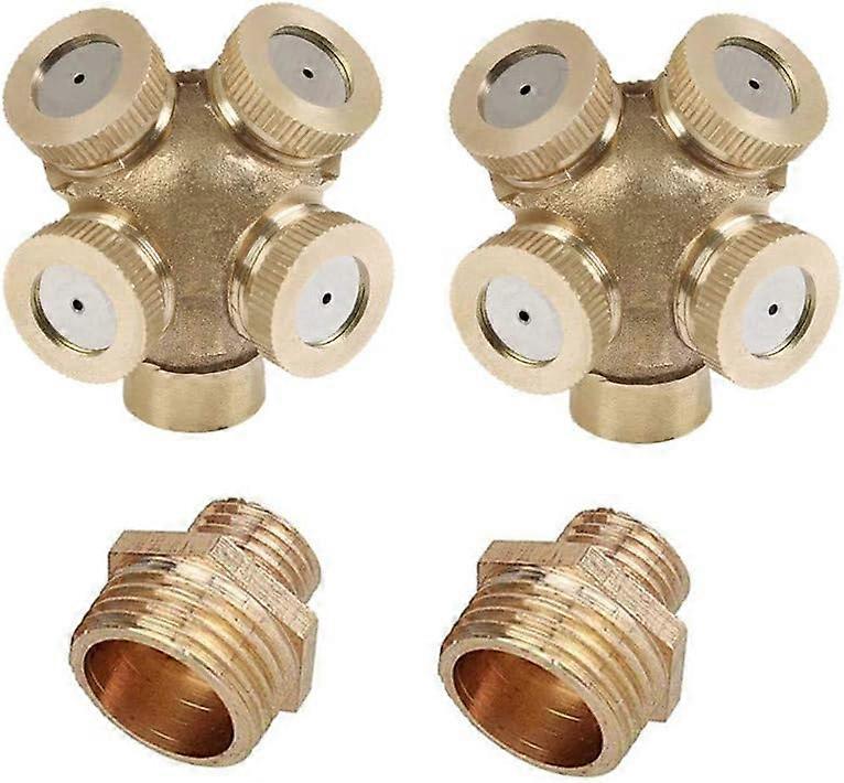 2 Pack 4 Hole Brass Spray Nozzle, Fogger Nozzle Garden Sprinklers Water Hose Connector Connector for Gardening and Agriculture