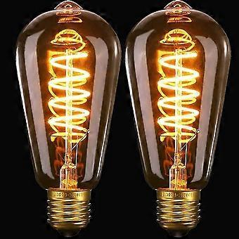 2 حزمة ST64 خمر اديسون ضوء لمبة-4W 40W عكس الضوء دوامة مرنة ليد خيوط المصابيح - لا وميض الرجعية E27 لمبة المسمار