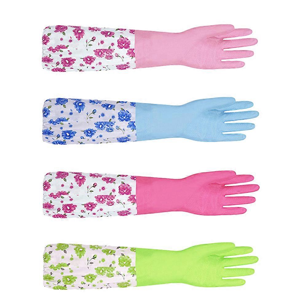 2 Pair Drawstring Rubber Cleaning Gloves with Flower Print, Lengthened Design for Dishwashing, Household Chores, Pet Care, and Gardening – Durable