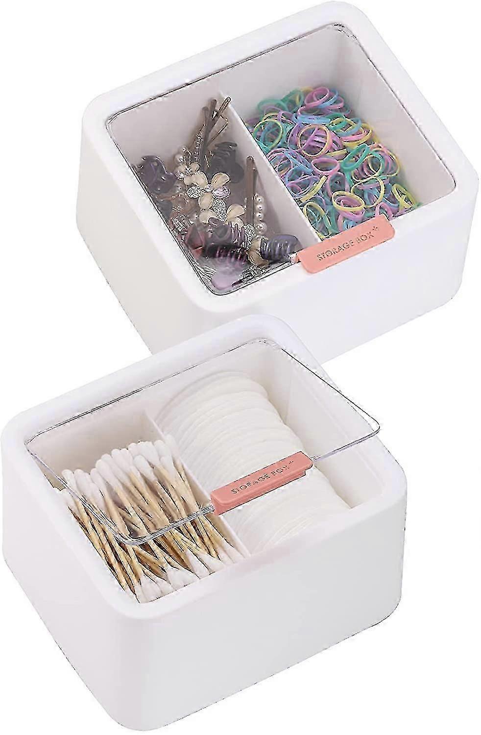 2 Storage Boxes-2 Independent Cotton Swab Dispensers, Dental Floss Holder, Used In Bathroom, Bedroom, Cotton Balls, Cotton Pads (white)