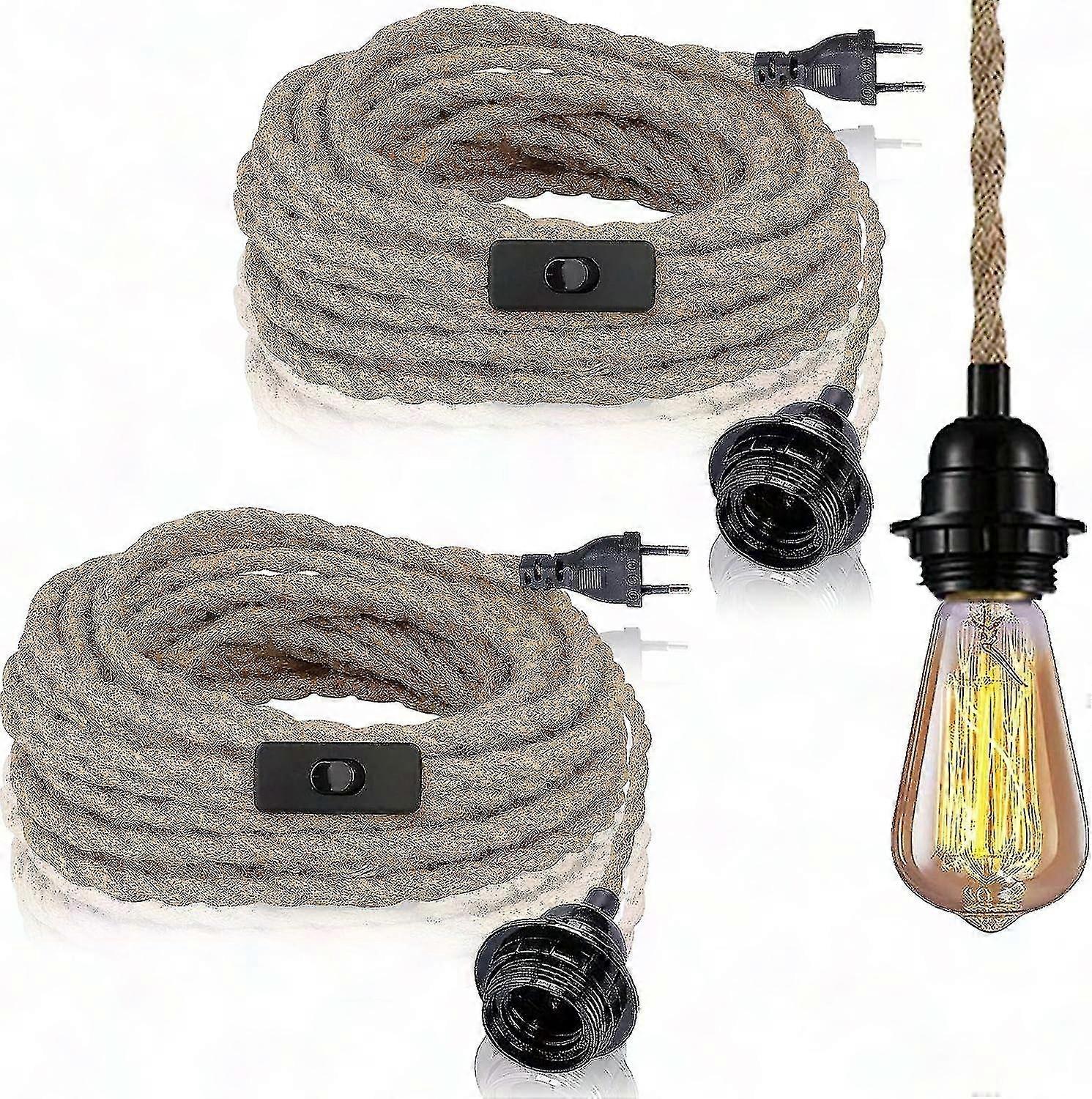 2 Pack Hemp Rope Pendant Lights with Switch, 4.5m Cable, E27 Socket for Hall, Kitchen, Dining Table, Bar (No Bulb Included)