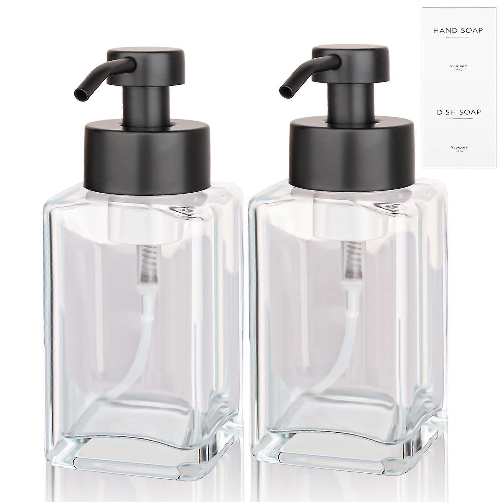 2 Pack Foaming Soap Dispenser Stainless Steel Pump Refillable Glass Liquid Dish Soap Bottles for Kitchen Sink 12oz