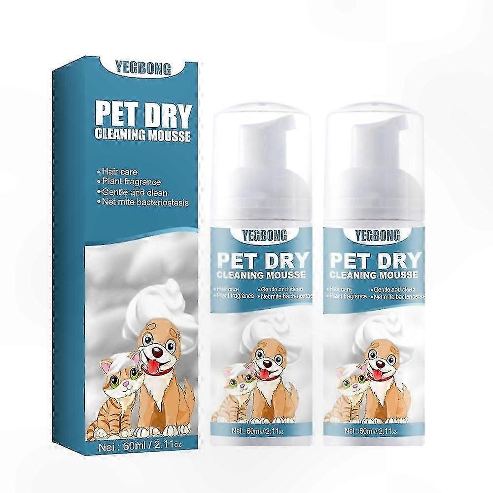 2-Pack Deodorizing Mousse for Dogs & Cats - Waterless Shampoo, Moisturizing Formula, Anti-Mite, Odor Control, Softens Coat