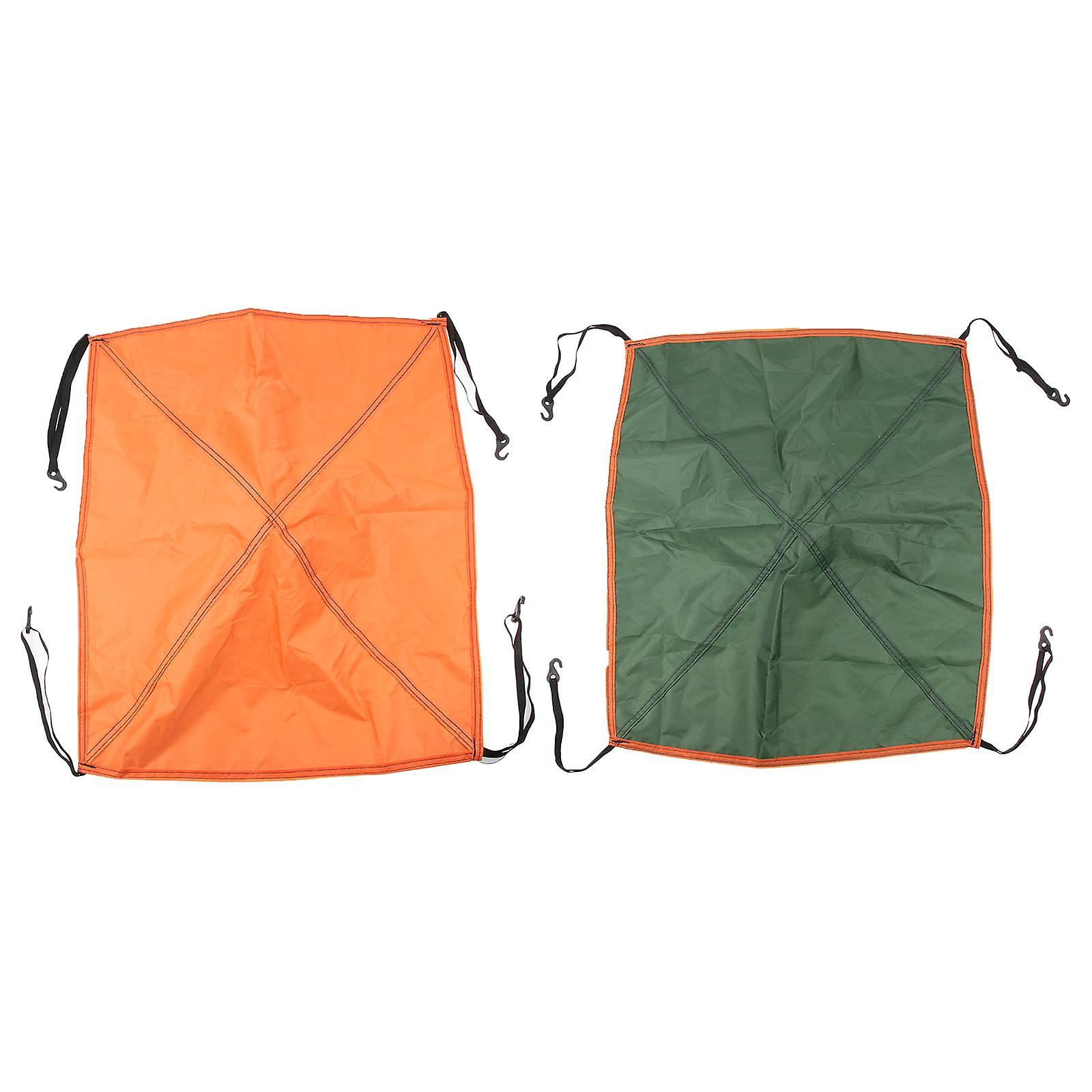 Description: High elastic extension belt and hook, used to fix the top cover on the tent Inner layer silver coated, protection and sun protection Prevent rainwater from accumulating on the top of the tent Waterproof oxford cloth Square size about 56x56cm/22x22inch Specification: Color: Green, Orange Material: Oxford Cloth Package Includes: 1 Piece Tent Top Cover Orange 1 Piece Tent Top Cover Green