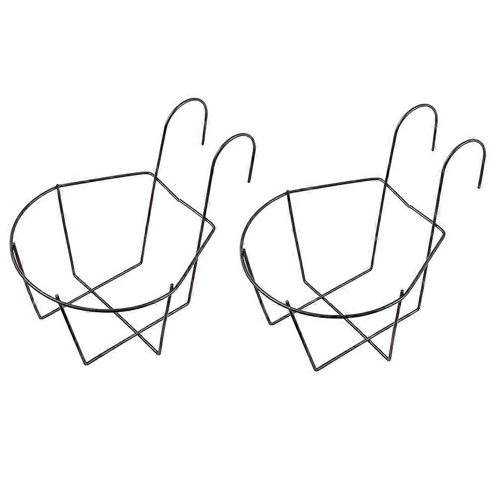2Pcs Iron Hanging Flower Holder Balcony Flowerpot Rack Railing Planter (Black)