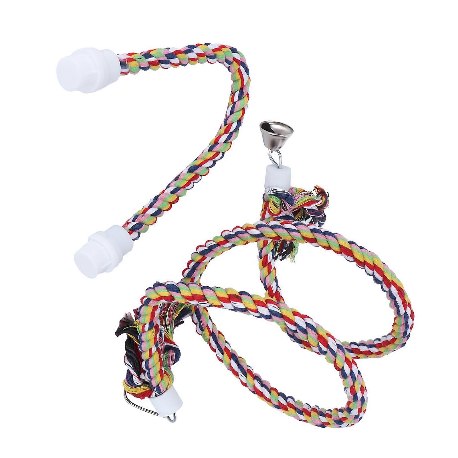 2Pcs Bird Stand Rope with Bell Colorful Hanging Cotton Rope Parrots Climbing Bar Toys