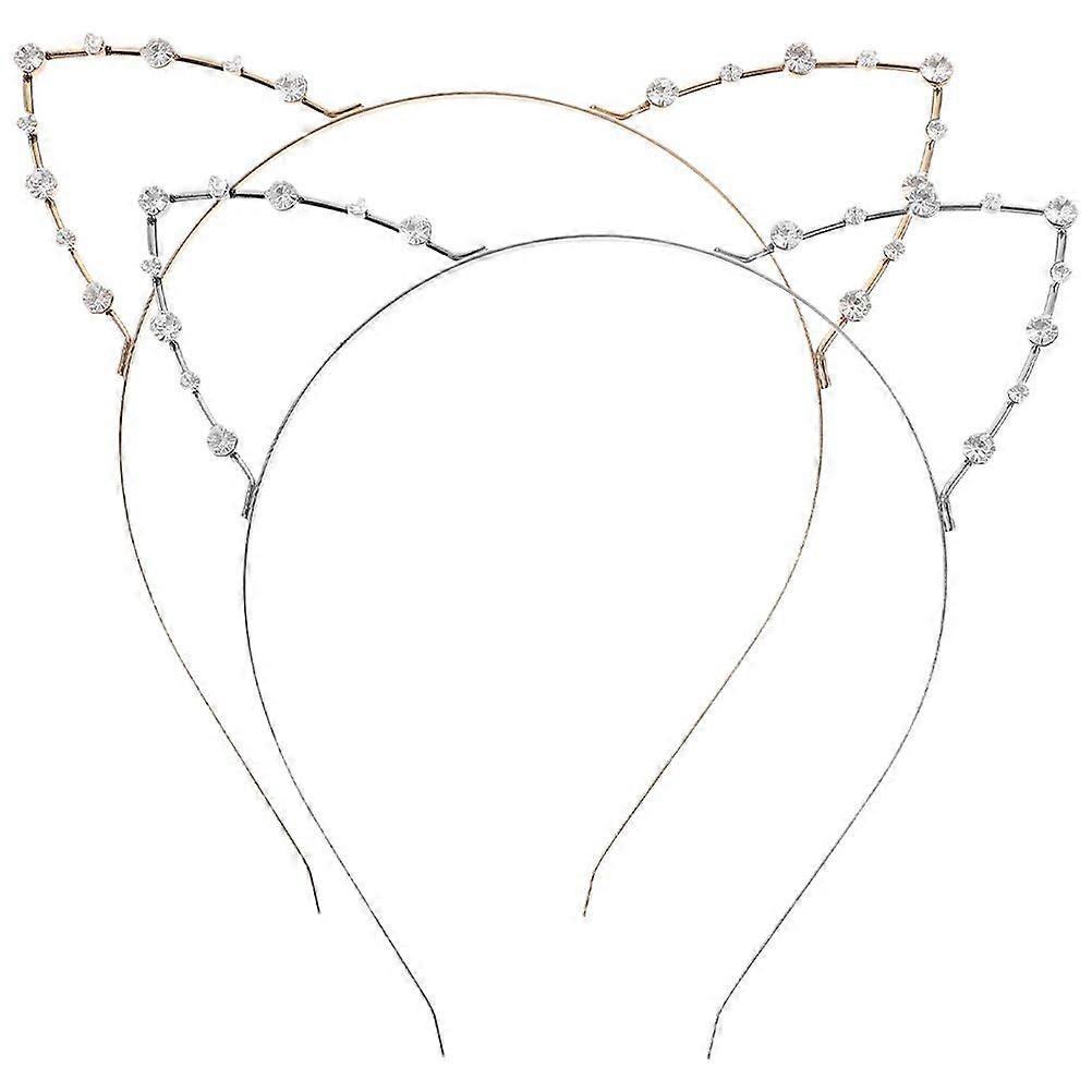 2pcs Cat Ear Headband Party Headband Rhinestone Headpiece Cat Costume Supply