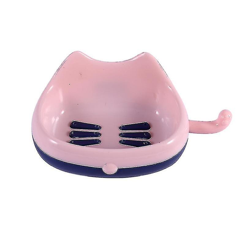 2 Pieces Cat Cartoon Soap Box Free Perforation Dormitory Household Bathroom Soap Shelf Rackblue,13.5*7.5*10cm