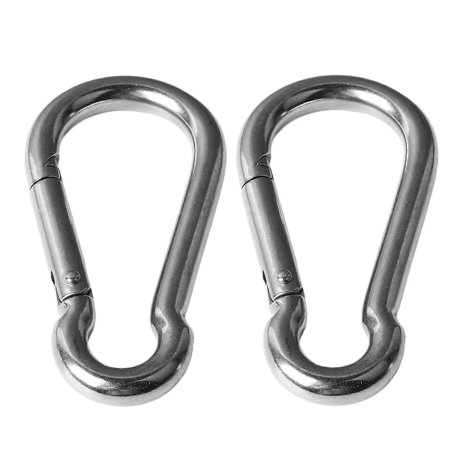 2PCS Snap Clamp Key Chain Link Buckle 120mm Stainless Steel Spring Snap Hook for Outdoor Camping Hammock Hiking Travel