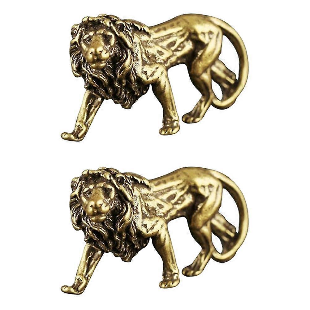 2Pcs Brass Lion Ornaments Retro Animals Decorations Lovely Desktop Decoration