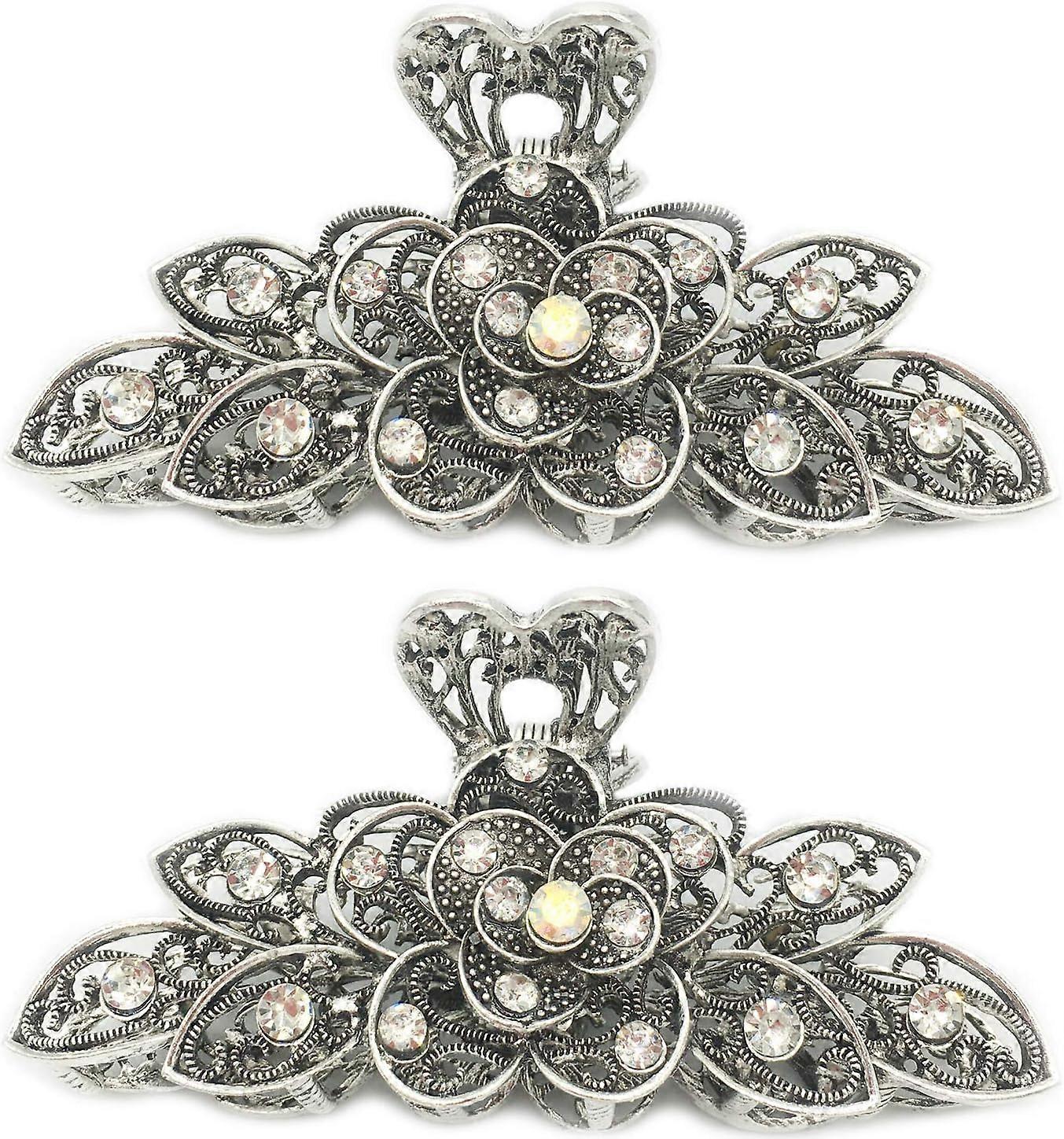 2 Pcs Women Retro Chic Rhinestone Alloy Fancy Hair Claw Jaw Clips Pins White Diamond