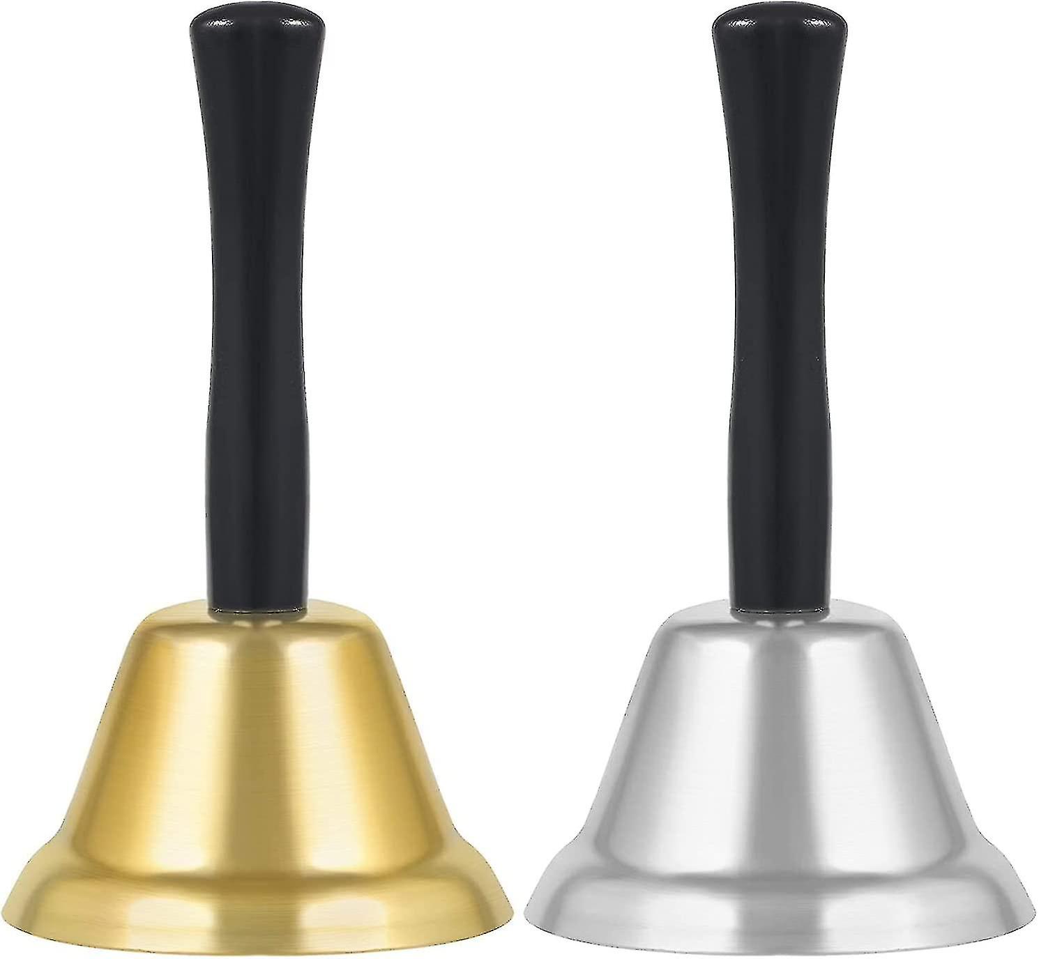 2 Pieces Metal Hand Bells, Clear And Loud Calling Bell, Wooden Handle Alarm Bells