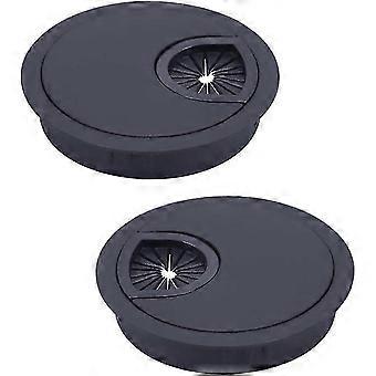 2 قطعة أسود كابل جروميت للمكتب - 60 مم جولة ناعم معدنية إدارة الكابلات غطاء ثقب لطاولة المكتب