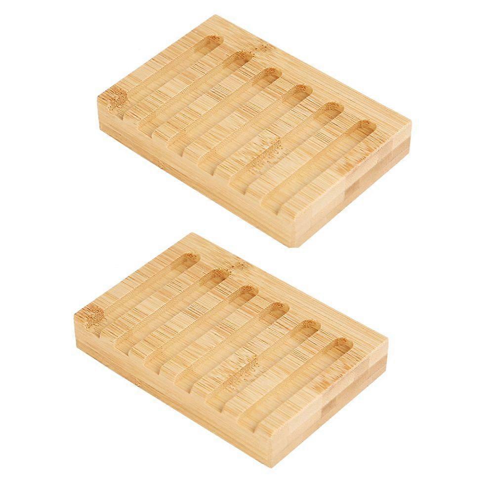 2Pcs Natural Bamboo Soap Dishes Bathroom Toilet Self Draining Soap Holder Tray