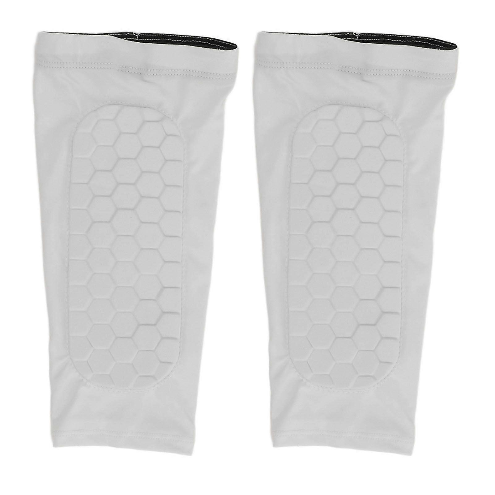 2PCS Soccer Leg Sleeves for Adults Anti Slip Breathable Calf Compression Sleeve Shin Guard Sleeve with Honeycomb Pad for Baseball Basketball White XL
