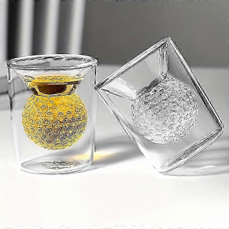 2pcs Golf Ball Glass Cups - Insulated Double Wall Shot Glasses with Funny Design - Perfect for Juice, Milk, Tea & More, Versatile Drinkware for All Se