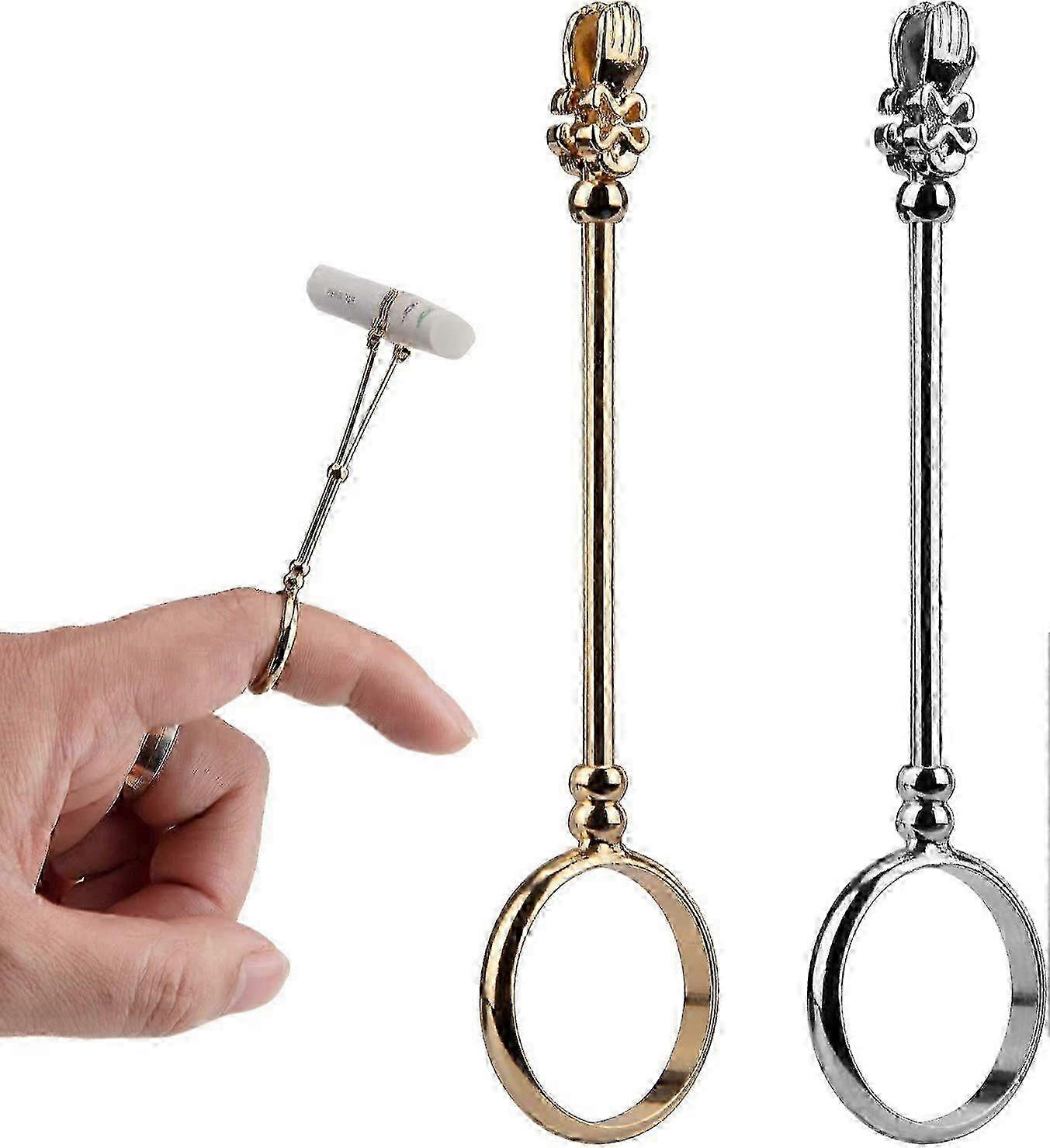 2pcs Cigarette Holder Ring Lady Elegant Protect Your Finger Smoker Holder Ring for Men and Women, Gold and Silver, M 17mm, 0.67inch