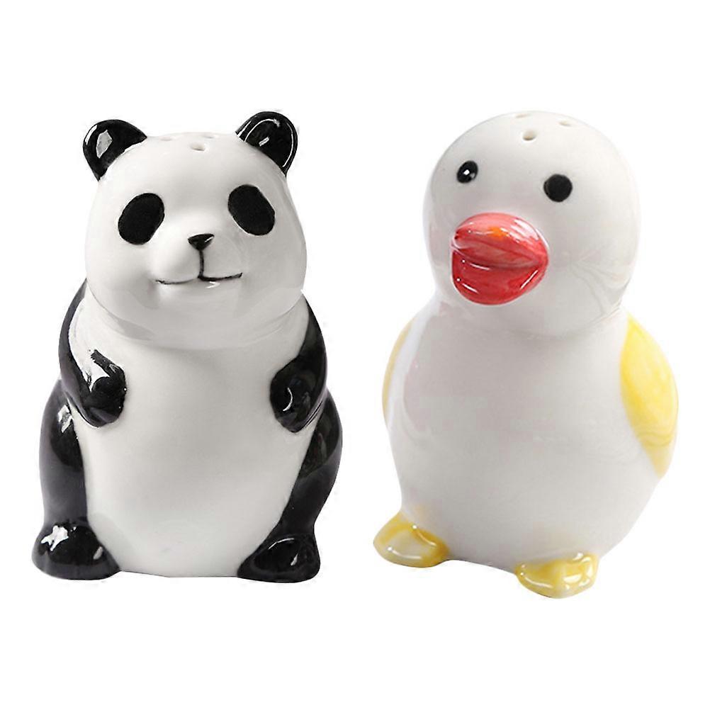 2pcs Cartoon Panda Duck Ceramic Spice Containers for Kitchen, Dining Room & Outdoor Use – Adorable & Practical Seasoning Bottles for Home & Picnic
