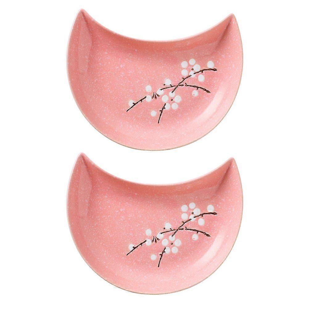 2Pcs Ceramic Sushi Containers Japanese Style Plates Creative Moon Shape Dishes