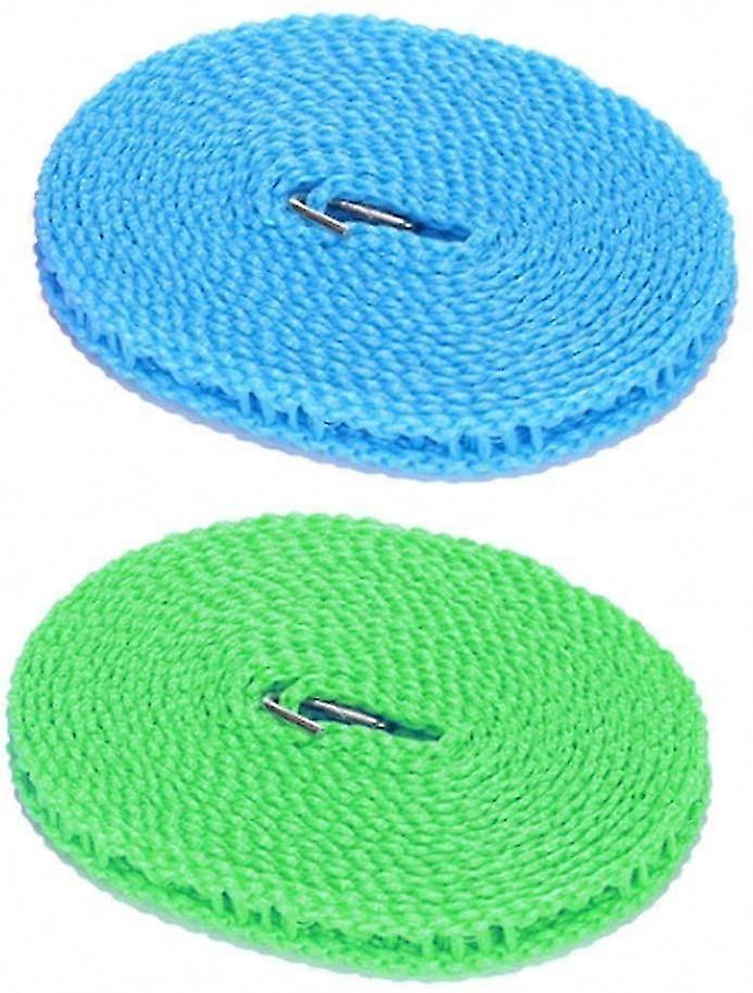 2Pcs Windproof Clothesline, Nylon Clothesline, Portable Travel Clothesline, Used for Indoor and Outdoor Camping Hangers (Blue, Green, 5m)