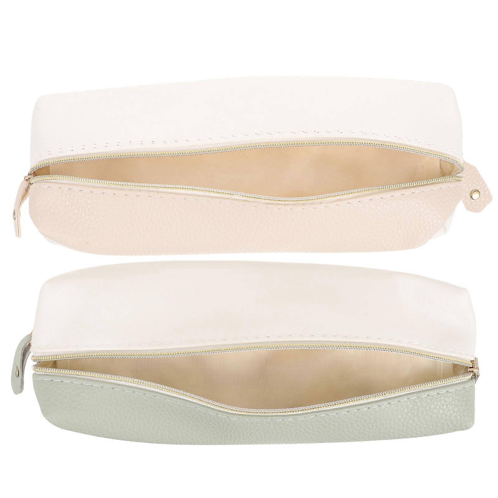 2pcs Large Capacity Pencil Bag PU Pen Case Pen Zipper Bag Pencil Organizer Makeup Brush Bag
