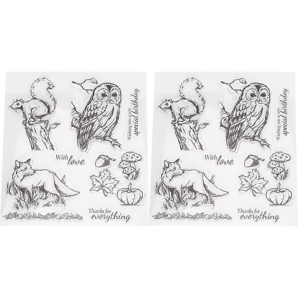 2Pcs Transparent Stamp Rubber Stamp DIY Journal Owl Squirrel Fox Pattern Seal T1672