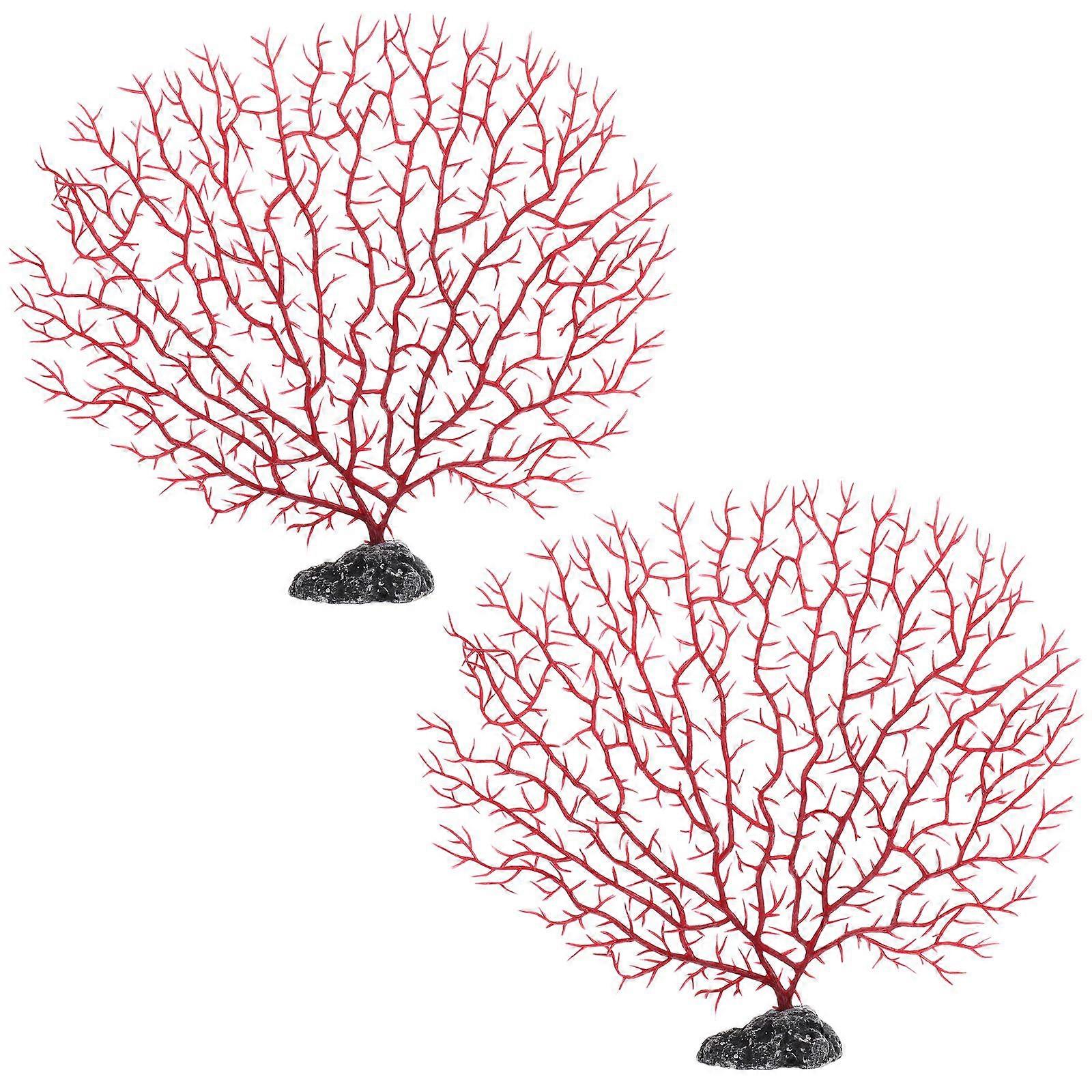 2pcs Fish Tank Simulation Sea Fan Corals Plastic Water Plant Decor (Medium Size)