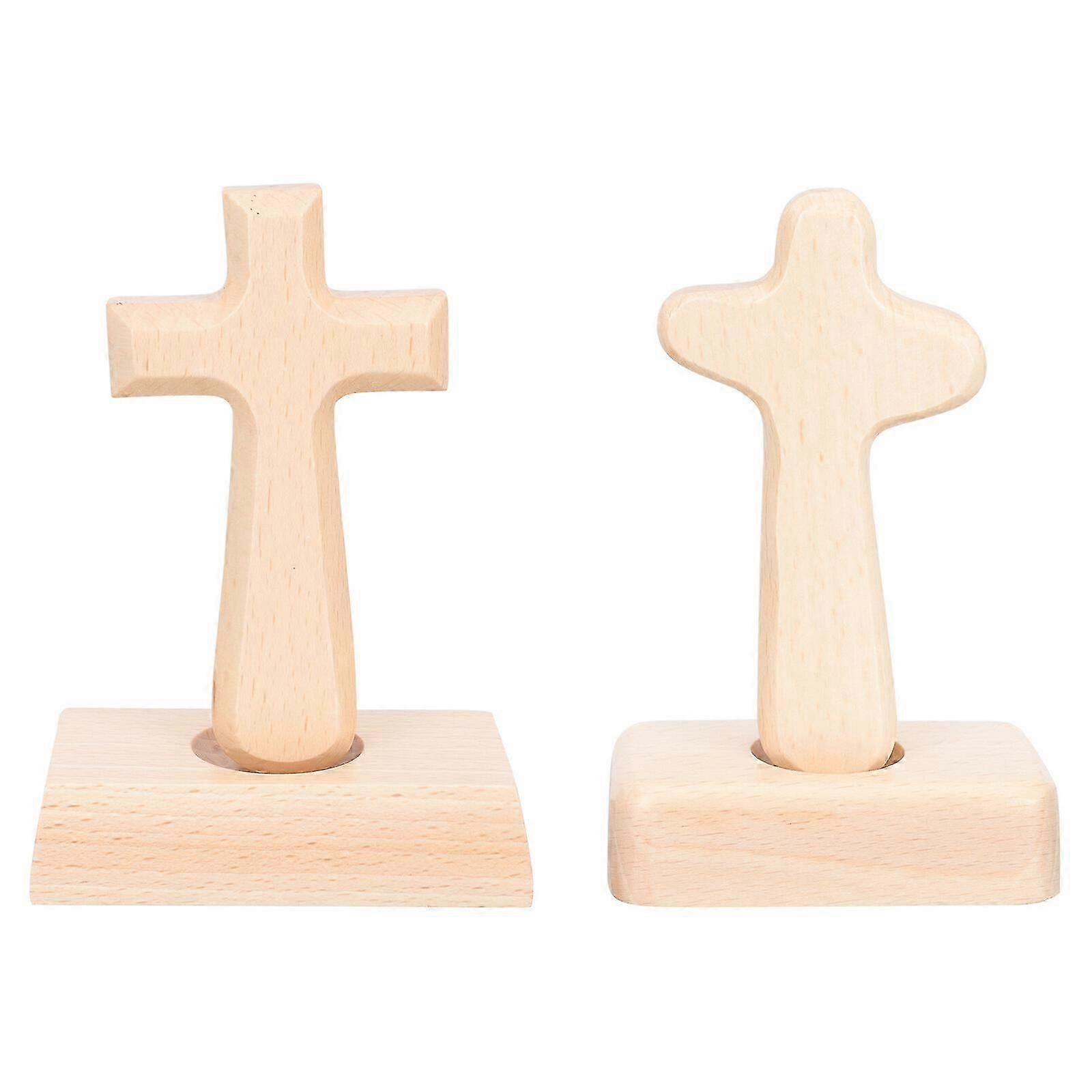2PCS Wooden Cross Ornament Decorative Magnet Standing Cross Desk Adornments