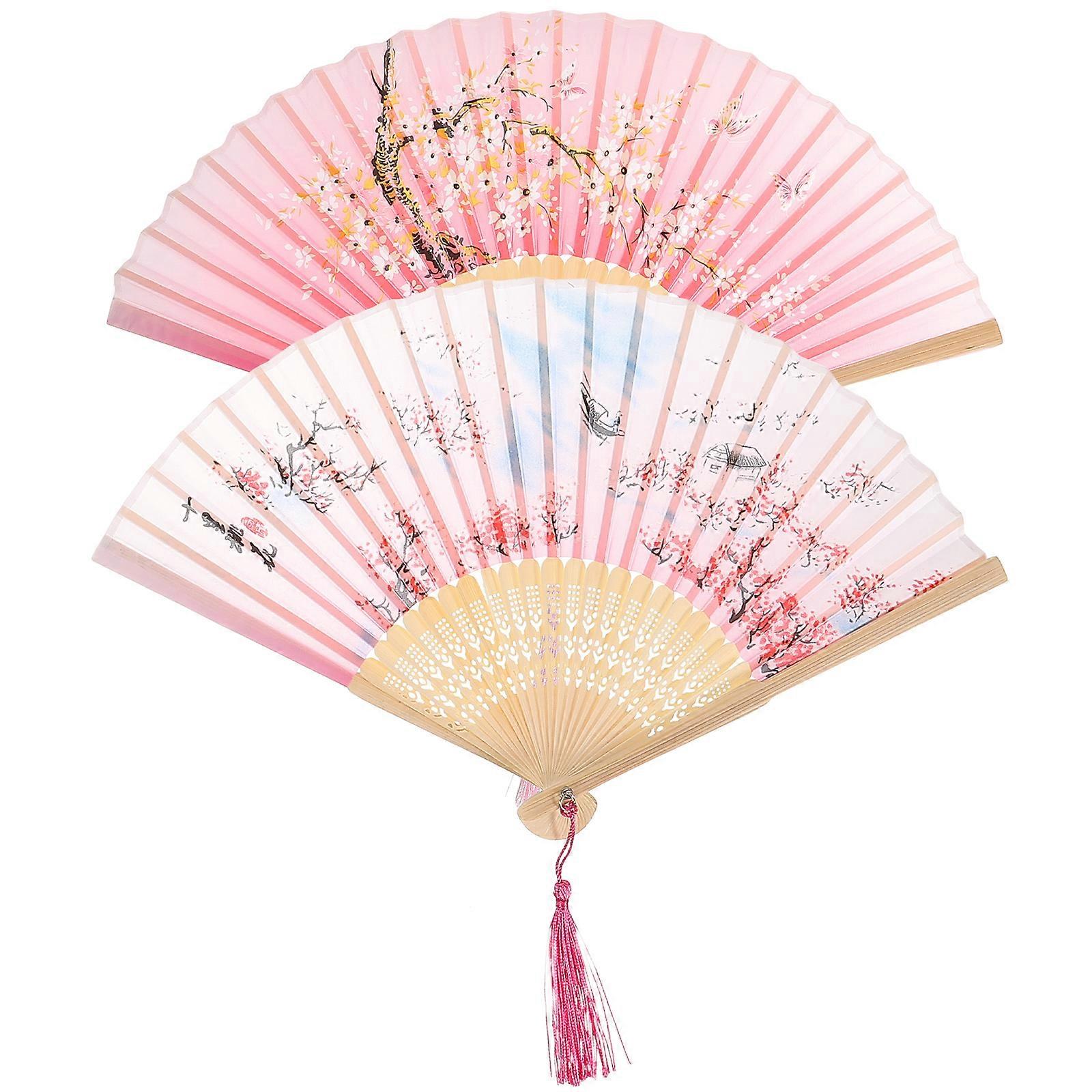 2Pcs Vintage Folding Fan Retro Hand Fan Handheld Folding Fan Dancing Fan