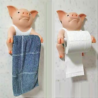 2PCS Pig Funny Toilet Paper Holder Toilet Organizer Restroom Rack