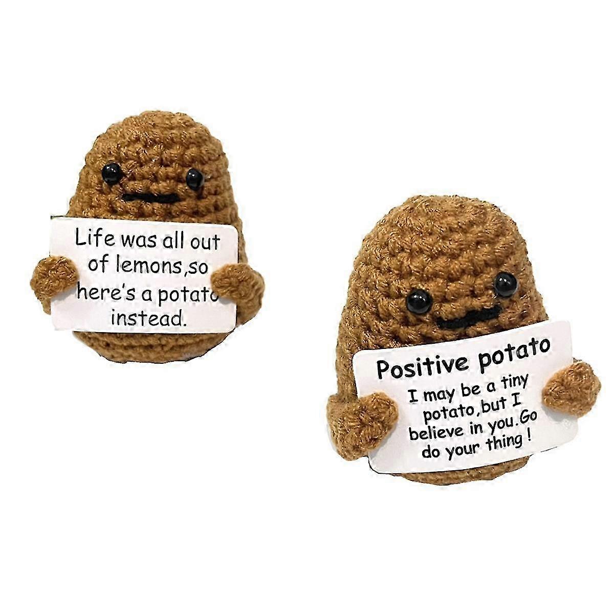 2Pcs Funny Crochet Potato Doll with Positive Card and Dark Color - Ideal for Kids!