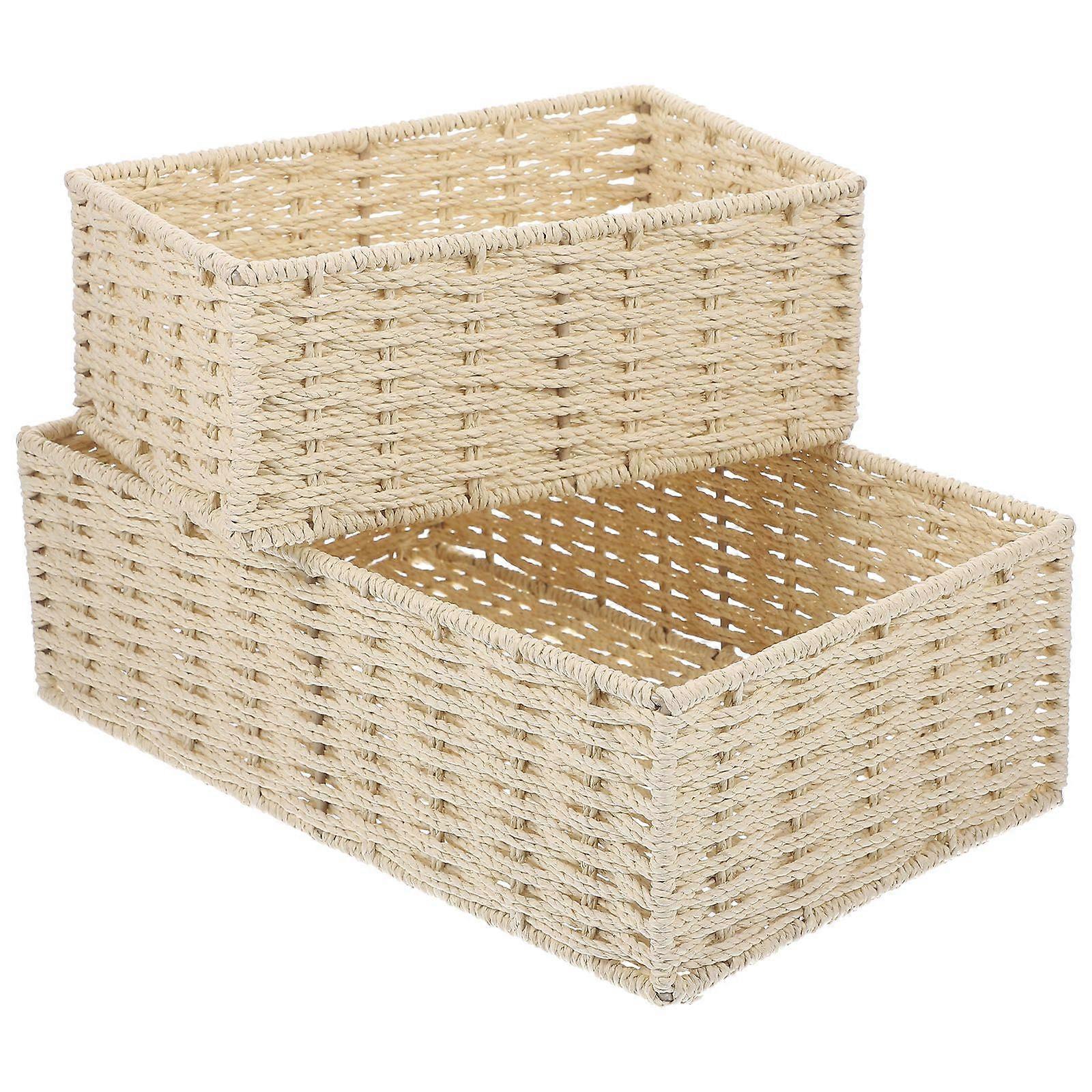 2pcs Woven Storage Baskets Woven Paper Basket for Organizing Natural Storage Bins