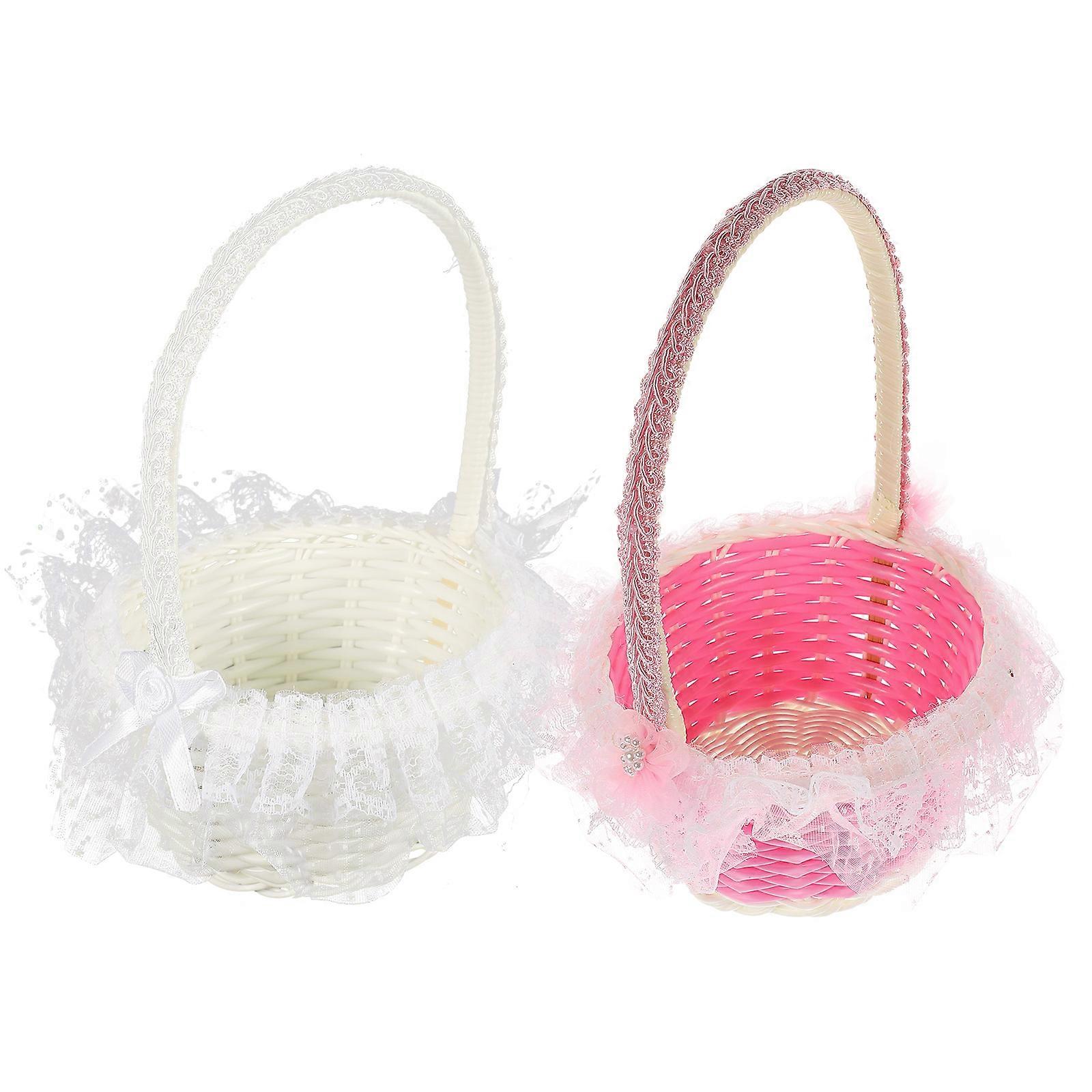 2Pcs Wedding Flower Basket Woven Storage Basket Party Favor Basket with Handles