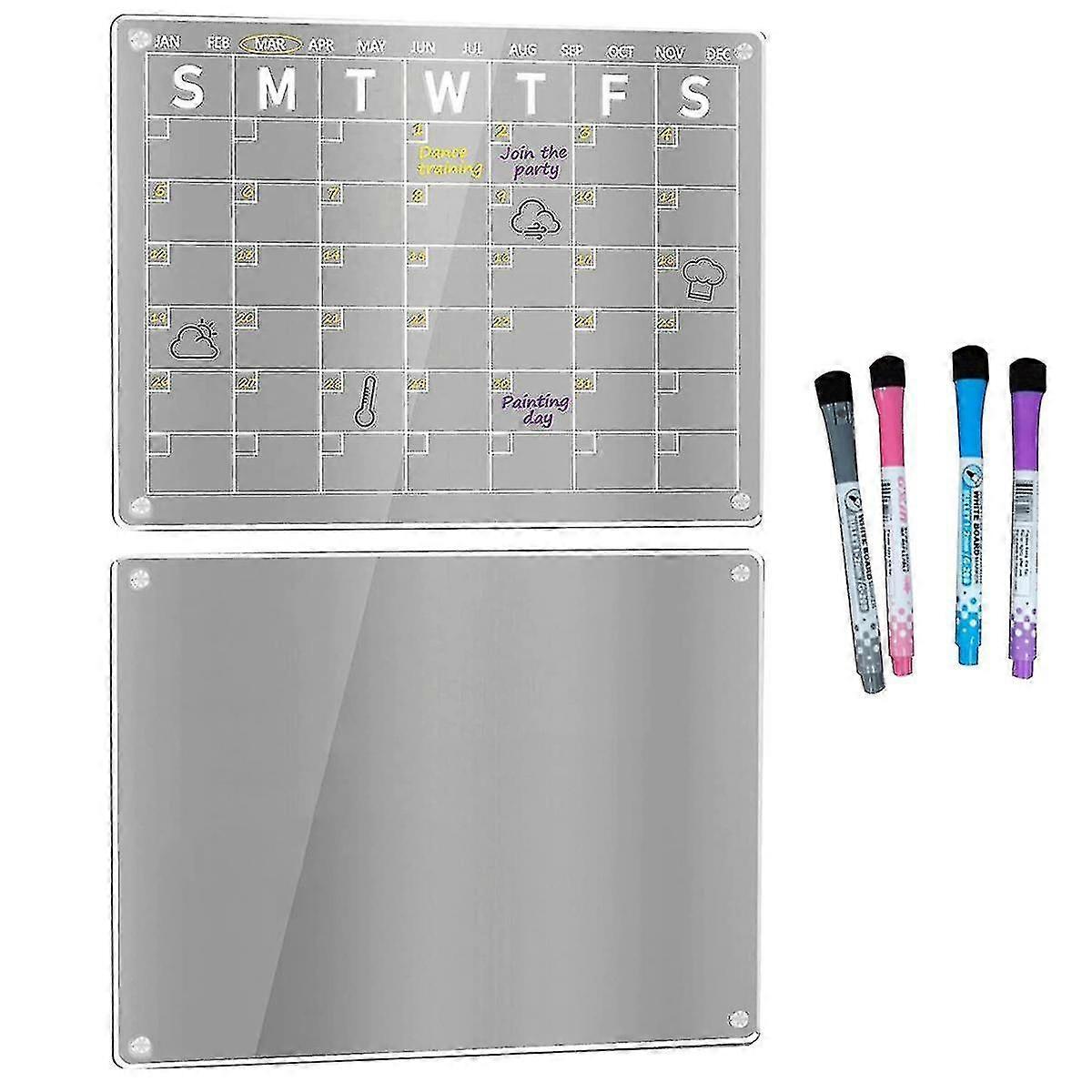 2 Pcs Transparent Acrylic Magnetic Dry Erase Calendar Board For Fridge, 16x12 Inch For Refrigerator
