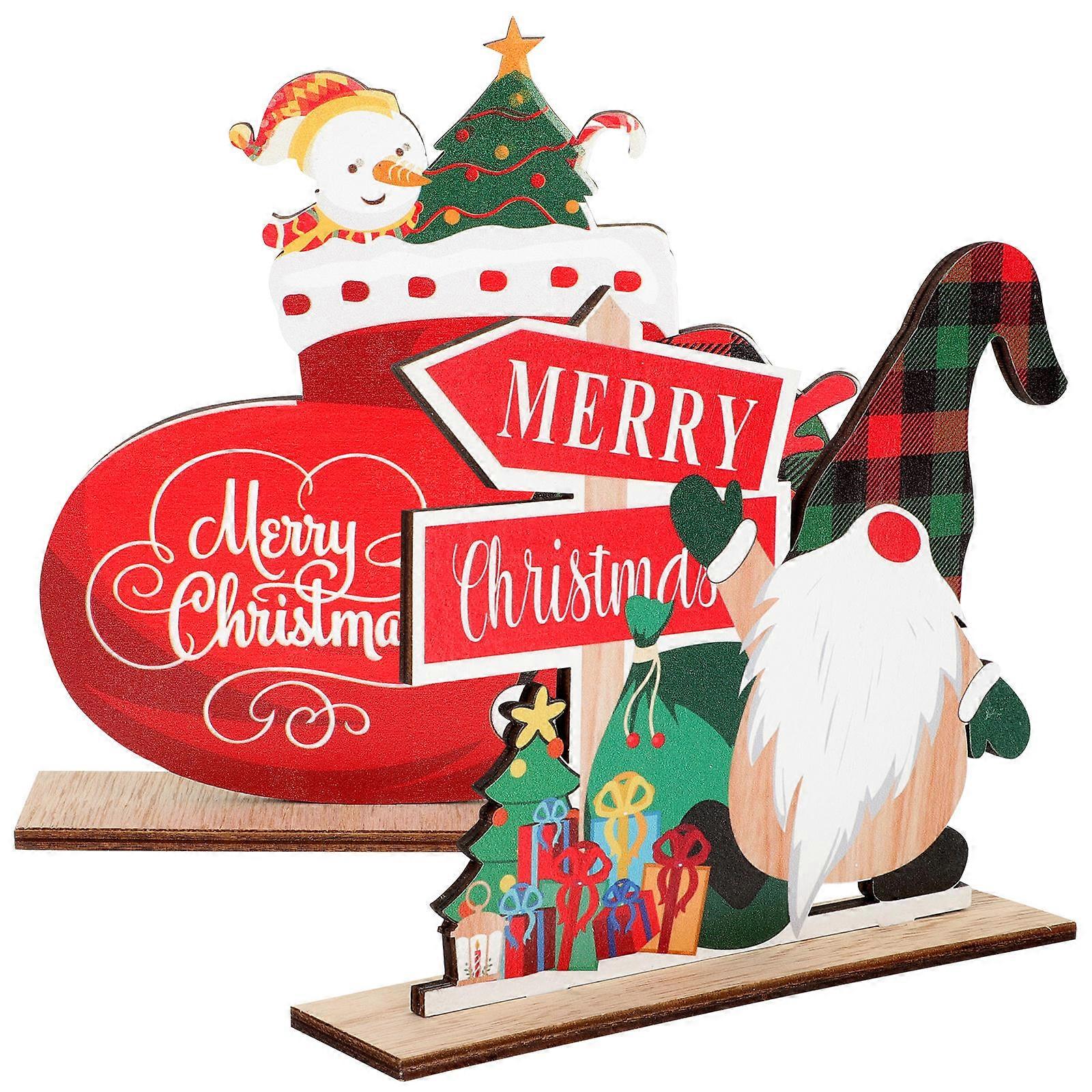 2pcs Xmas Wooden Tabletop Adornments Tabletop Ornaments Desktop Decorations