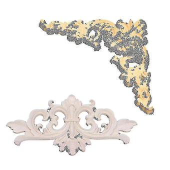 2 Pcs Unpainted Wood Oak Carved Corner Onlay Applique Furniture Home Decor Woodcarving Decal ,12.5x