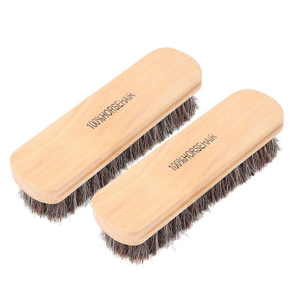 2Pcs Wooden Horsehair Shoe Brushes Leather Care Protecting Oiling Polishing Tool(Type A)