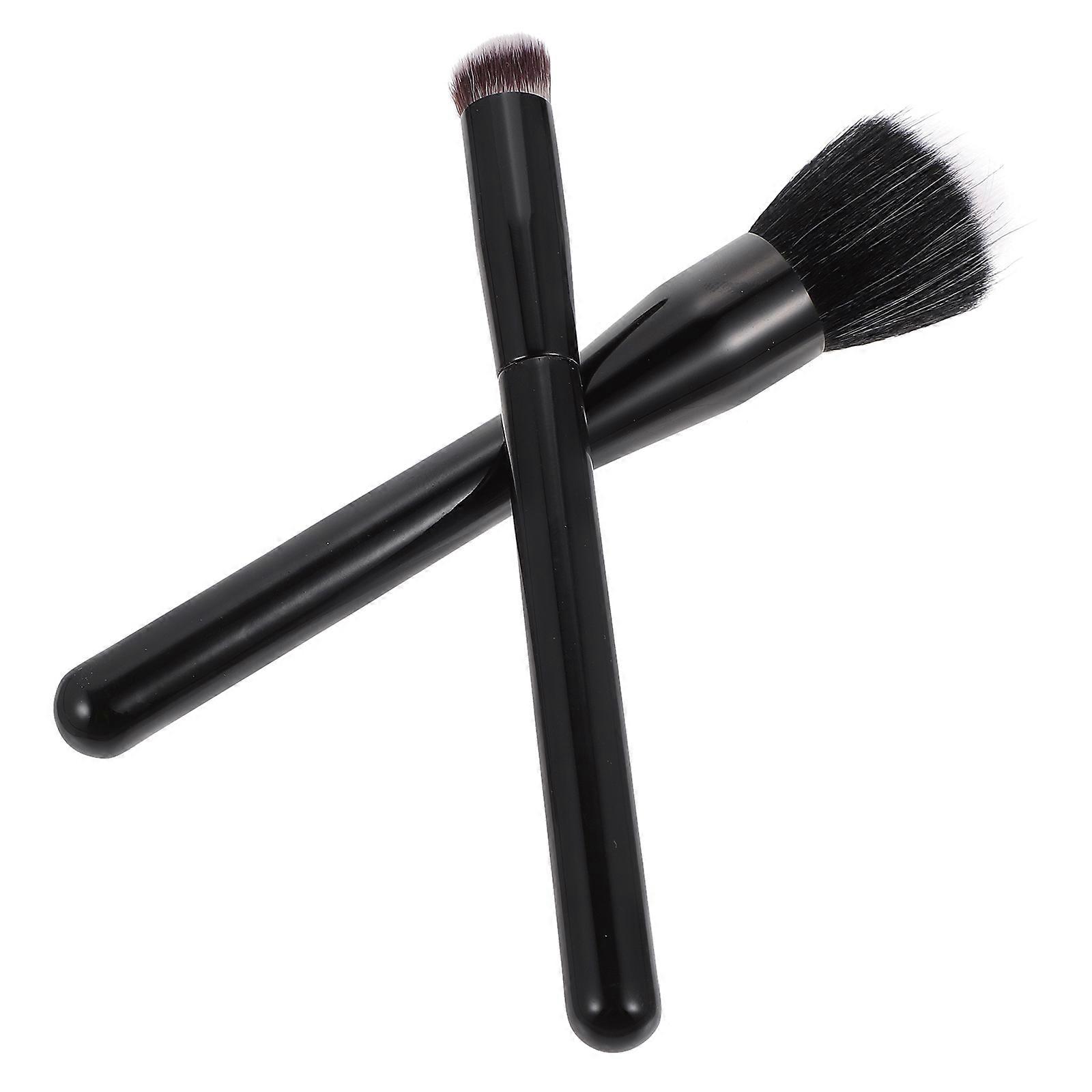 2 Pcs Double-layer Fiber Makeup Brushes with Wooden Handle for Natural Highlight Assorted Color