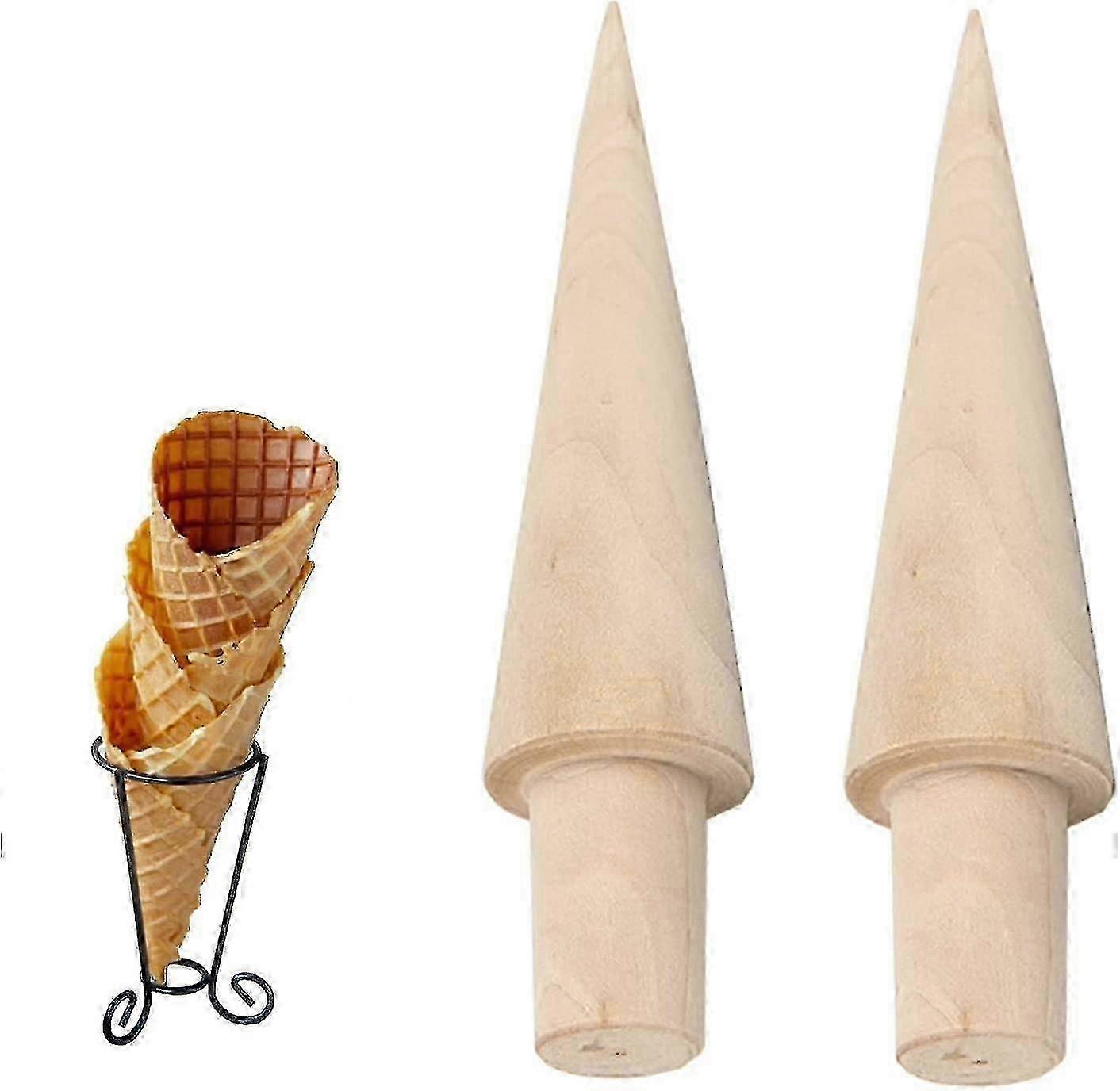 2 Pieces Wooden Cone Mold, Homemade Waffle Cone Roll, Waffle Roll Mold, Suitable for Making DIY Waffles and Ice Cream Cones(Brown)