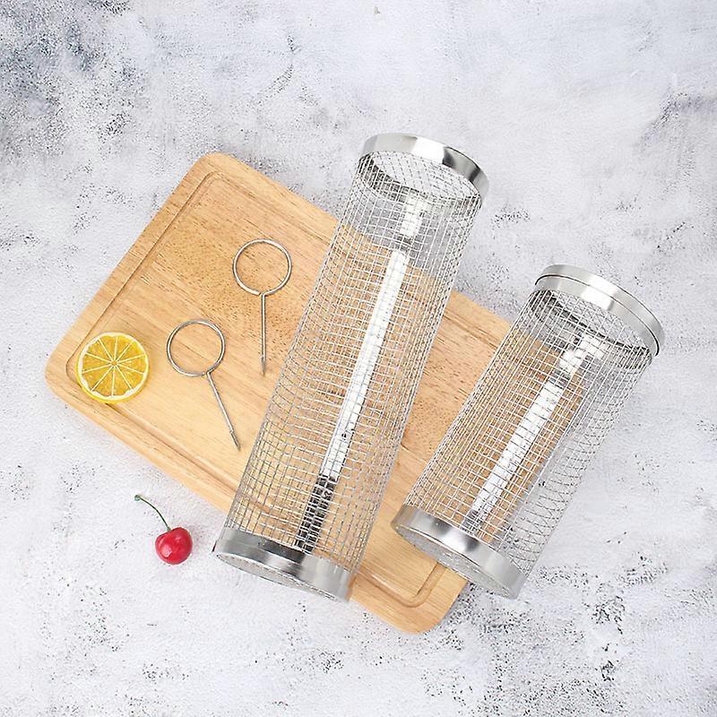 2pcs barbecue cage, stainless steel portable barbecue grill, 304 outdoor grill net, round smoked bbq grill roller, with grill fork