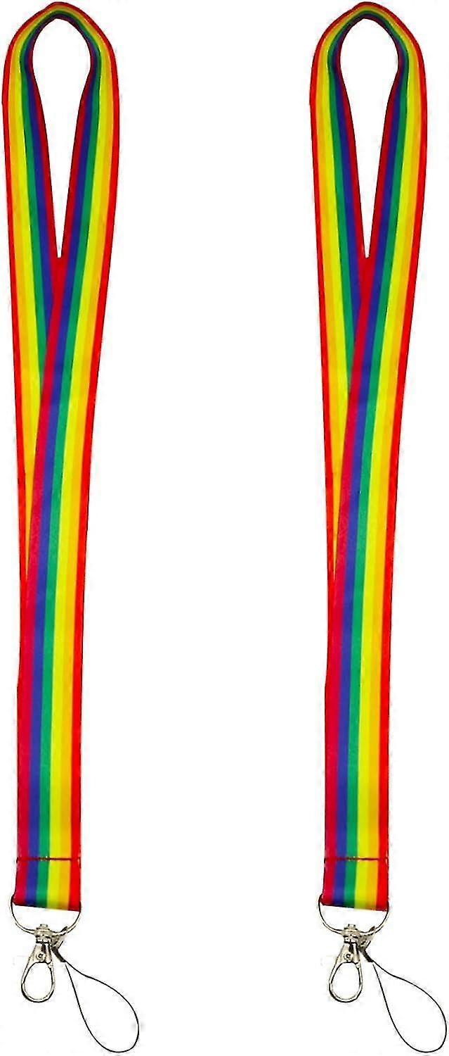 2Pcs Rainbow Neck Lanyard, Rainbow Lanyard Neck Strap, Nylon Neck Lanyard Strap,Badge Holder Neck Strap Keychain for LGBT Pride Party Decoration,